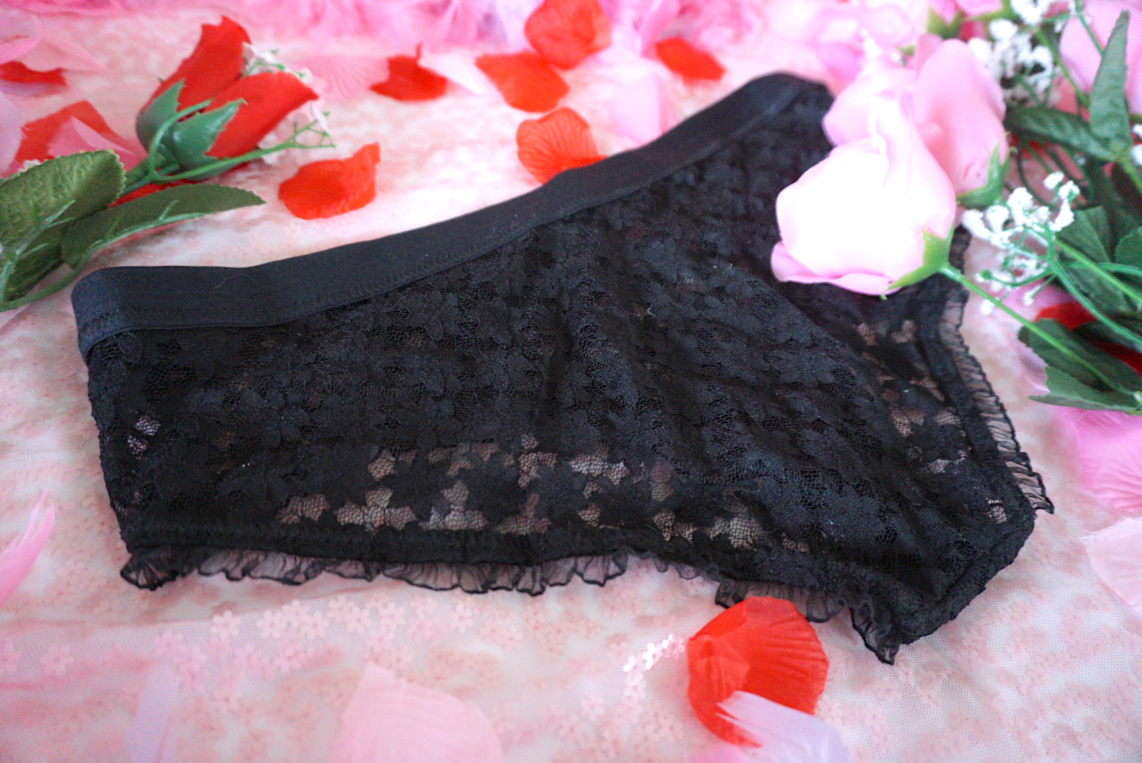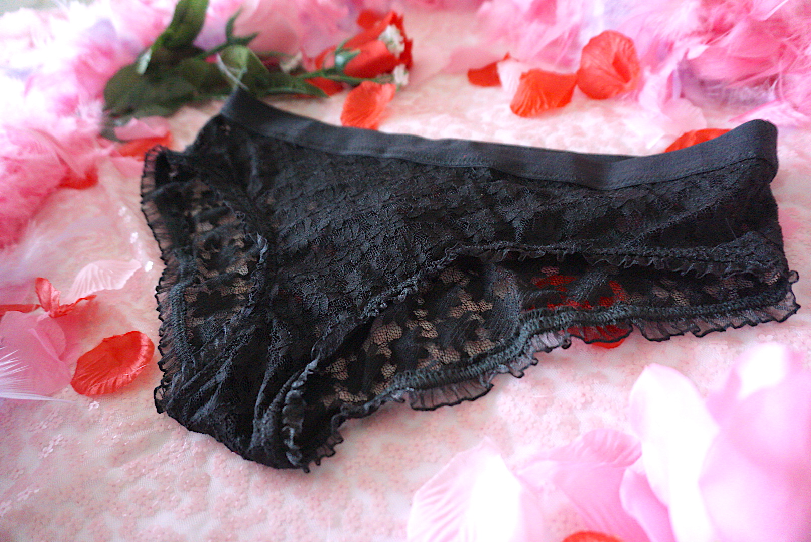 Super cute handmade black lace panty with black band and trim. Comfy enough for snoozing, lounging or everyday wear!